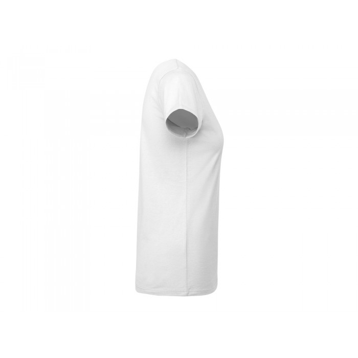 Облегающая женская футболка с коротким рукавом из органического хлопка, сертифицированного OCS. Горловина из риба 1x1. Усиленные закрытые швы по воротнику. Боковые швы.