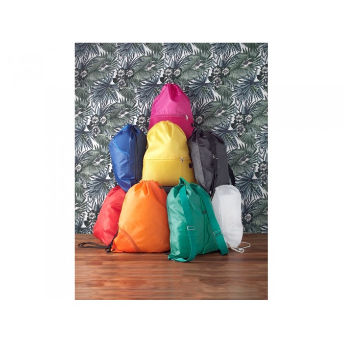 Рюкзак со шнурком и главным отделением на шнуровке в цвет изделия. Имеет один передний сетчатый карман на молнии и порт для наушников. Прочность до 5 кг. Трафаретная печать (1 цвет (лучшая цена!) *) на данный товар осуществляется бесплатно. Оплачивается только настройка оборудования в размере 4400 рублей на весь тираж.