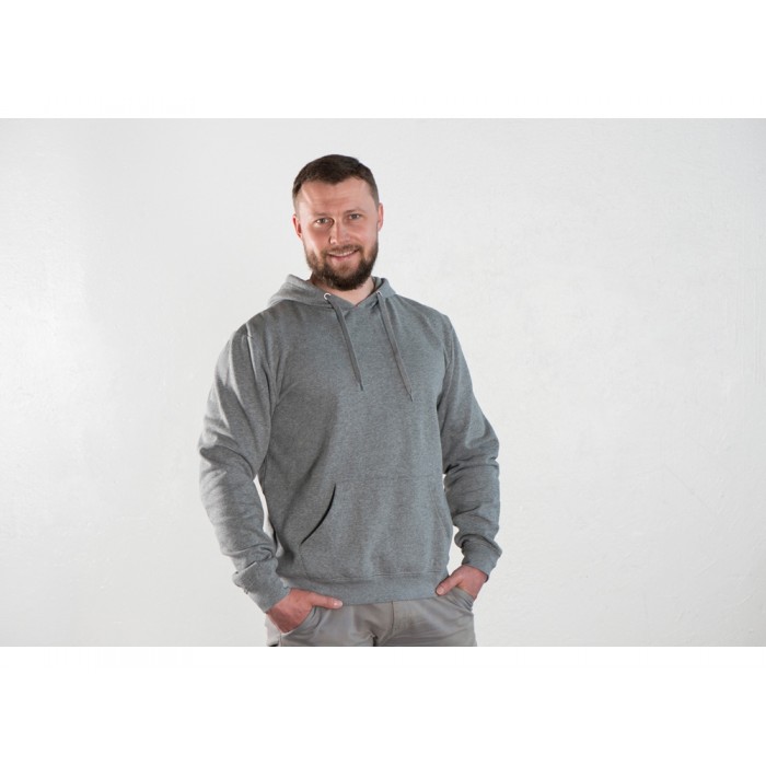 Толстовка с капюшоном (худи) из плотного футера с мягким начесом, с небольшим добавлением полиэстера. Удобная и практичная модель, подходит для прогулок по городу, активного отдыха, путешествий. • Прямой силуэт. • Капюшон с подкладкой в цвет основного материала, металлическими люверсами и плоским шнурком с наконечниками. • Удобный карман-кенгуру. • Долго сохраняет форму и не мнется благодаря небольшому содержанию полиэстера. • Гигроскопичное волокно, обладает хорошими гигиеническими свойствами. • Низ толстовки, рукавов и горловины обработаны рибом (резинкой) 1x1. Трафаретная печать (1 цвет (цветные изделия)) на данный товар осуществляется бесплатно. Оплачивается только настройка оборудования в размере 8200 рублей на весь тираж.