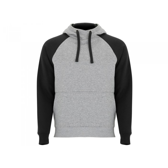Худи с контрастным рукавом реглан. Капюшон с запахом, с контрастной подкладкой и шнурком. На полочке карман кенгуру. Манжеты рукавов и низ изделия из риба 1х1. В ассортименте представлена аналогичная детская модель "Badet"